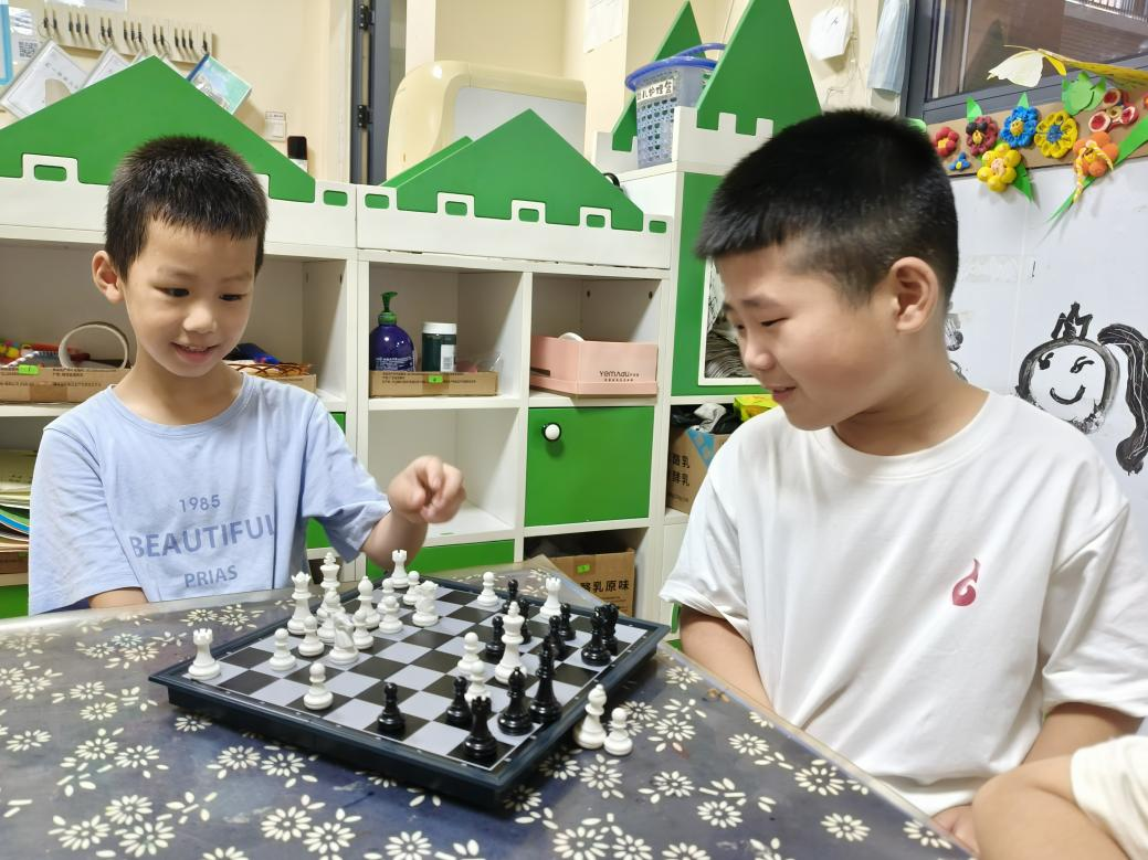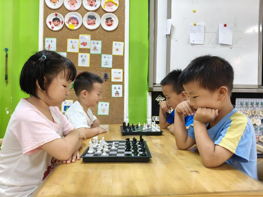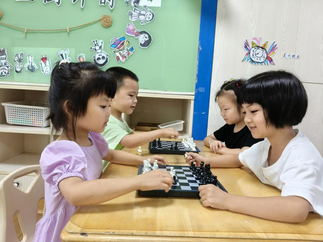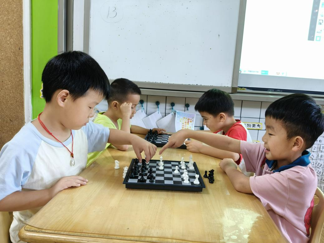 生动有趣的国际象棋课堂吸引了活泼好动的孩子们,也激发了孩子们神奇大脑中的“十万个为什么”,孩子们聚精会神地听着教练讲国际象棋棋子的故事,看着老师们绘声绘色地讲解示范每个棋子的走法,对国际象棋游戏展现出浓厚的兴趣。经过专业教练们一个月的细心指导,孩子们已经掌握了国际象棋的游戏规则,班级人人都会下国际象棋,玩国际象棋也成了孩子们区域活动时最受欢迎的游戏。