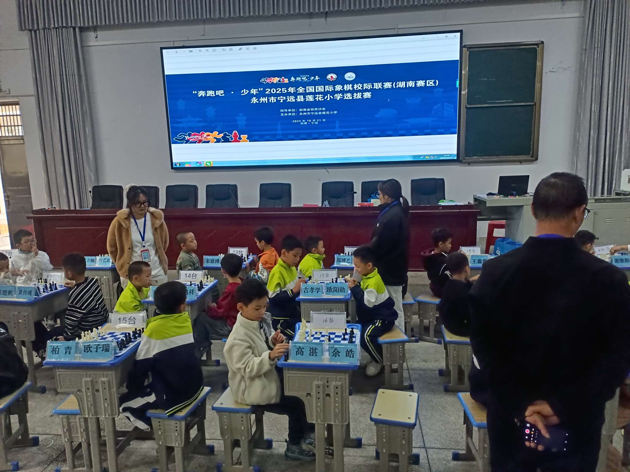 今日永州讯(通讯员 唐泽平 朱昌远)10月21日下午,“奔跑吧•少年”2025年全国国际象棋校际联赛(湖南赛区)永州站选拔赛暨宁远县莲花小学选拔赛,在该校会议室正式拉开帷幕。全校57名具备国际象棋基础的学生齐聚赛场,于黑白棋盘间展开智慧博弈,角逐代表学校晋级省级总决赛的宝贵资格。
