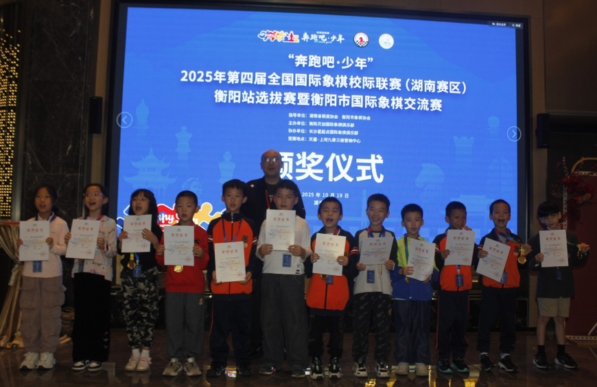 10月19日,“奔跑吧·少年”2025年全国国际象棋校际联赛(湖南赛区)衡阳站选拔赛暨衡阳市国际象棋交流赛,在衡阳市天嘉·上河九章售楼部圆满落幕。本次赛事由湖南省棋类协会与衡阳市象棋协会联合指导,衡阳贝加国际象棋俱乐部主办,长沙星起点国际象棋俱乐部协办。
