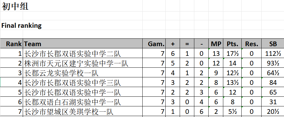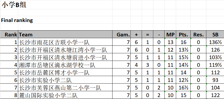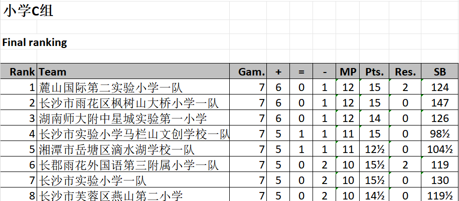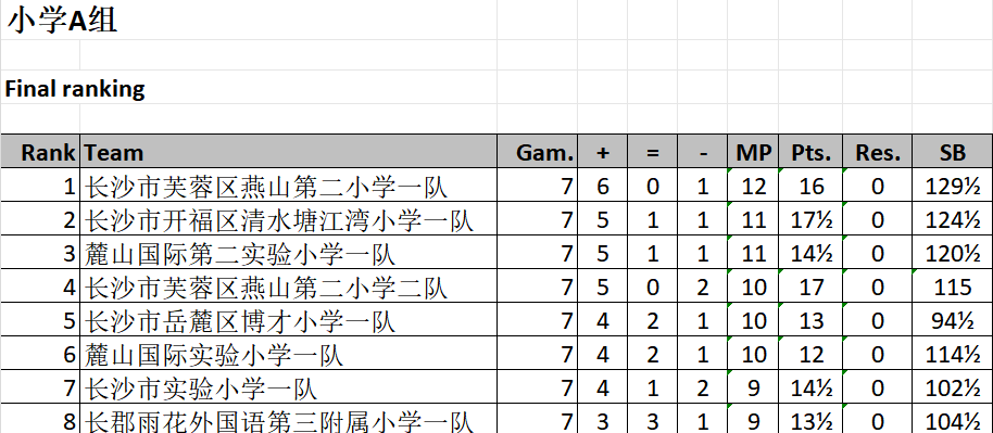 2025年“奔跑吧·少年”第四届全国国际象棋校际联赛(湖南赛区)名次表