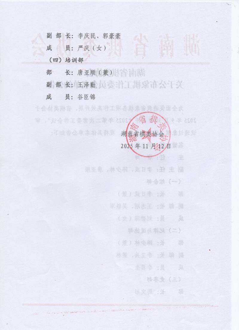 湖南省棋类协会关于公布象棋工作委员会名单的公告