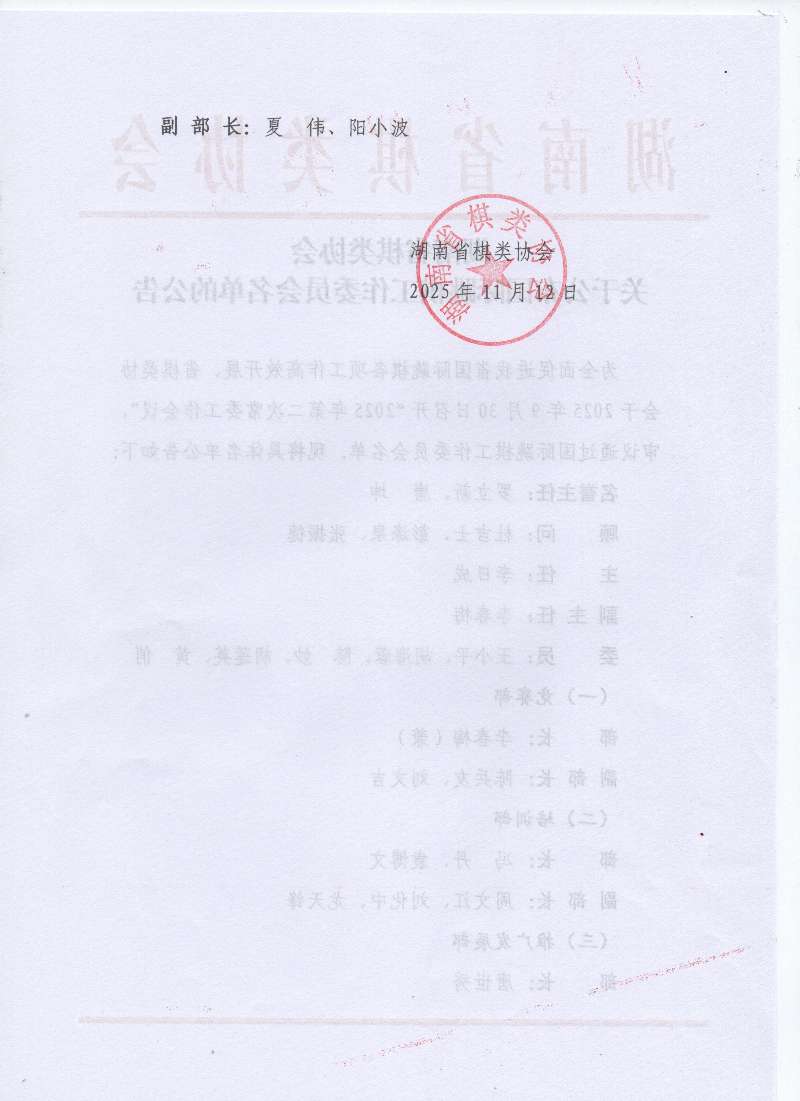 湖南省棋类协会关于公布国际跳棋工作委员会名单的公告