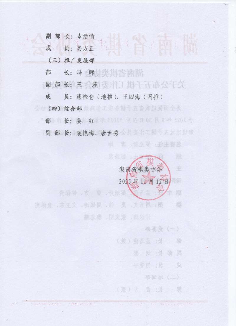 湖南省棋类协会关于公布五子棋工作委员会名单的公告